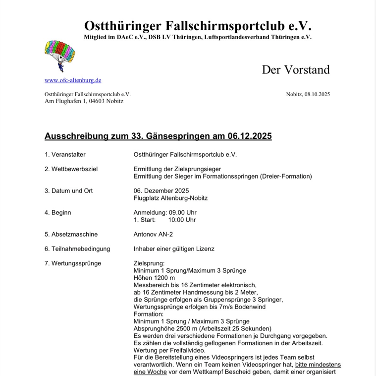 Wir erwarten Dich auf unserer Sprungzone am Flugplatz Altenburg – Nobitz